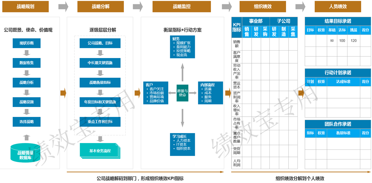 战略绩效系统:实现战略分解、战略执行、战略回顾,战略改进四个部分。
